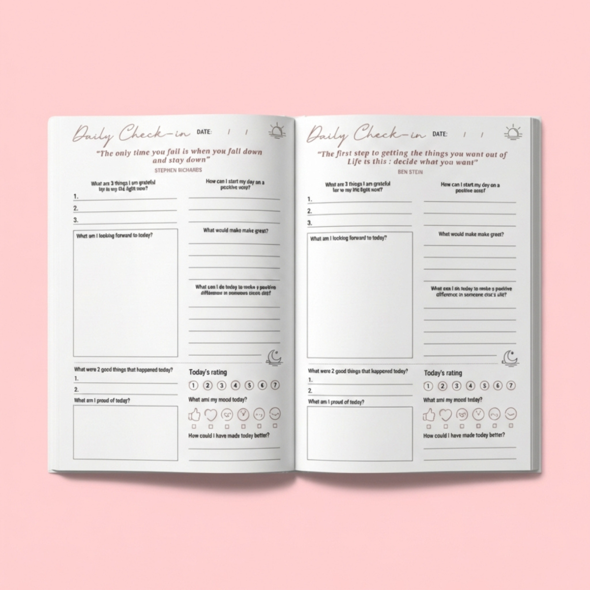 Pinterest gives you a random question with no context. This journal gives you a complete daily system, in the morning you set your intention, in the evening you reflect. It's not a question. It's a practice.